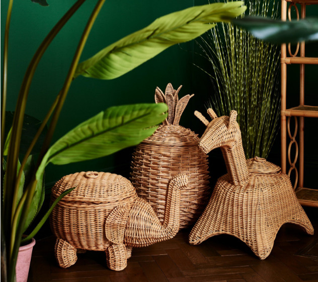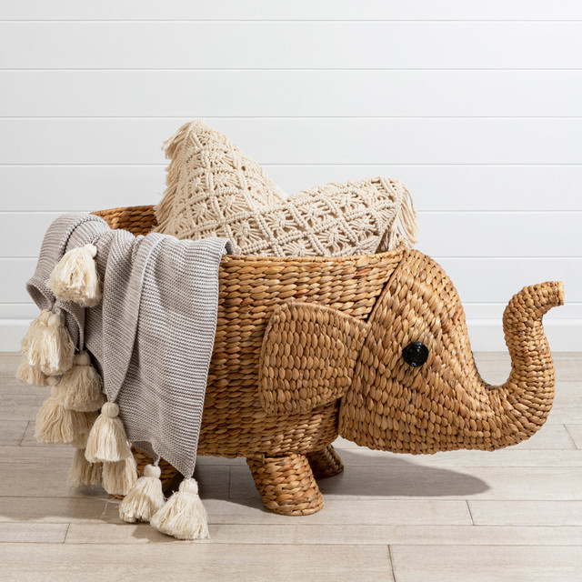 Rattan Woven Elephant Toy Storage Basket With Lid/ Natural Animal Laundry Basket For Kids' Furniture - Products For Kid