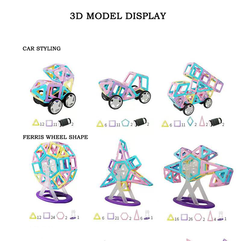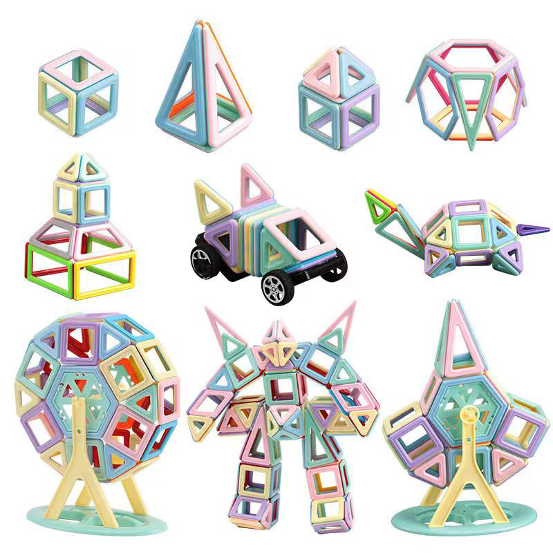 This magnetic building block is called Macaron building block, its color is very beautiful, and we have 5 product specifications for customers to choose. Different specifications can make different shapes, cultivate children's hands-on ability.
