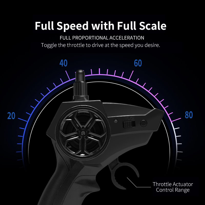 Selling point: 1: 2.4G remote control, multiplayer play without interfering with each other 2: You can control the speed according to your own preferences to meet the needs of different players 3: Strong power, speed competition, smooth driving 4: Suspension system reduces bumps and grips the ground smoothly Function: forward and backward, left turn, right turn, multi-directional driving
