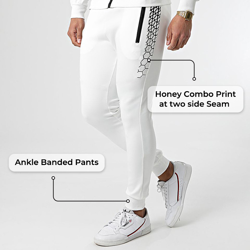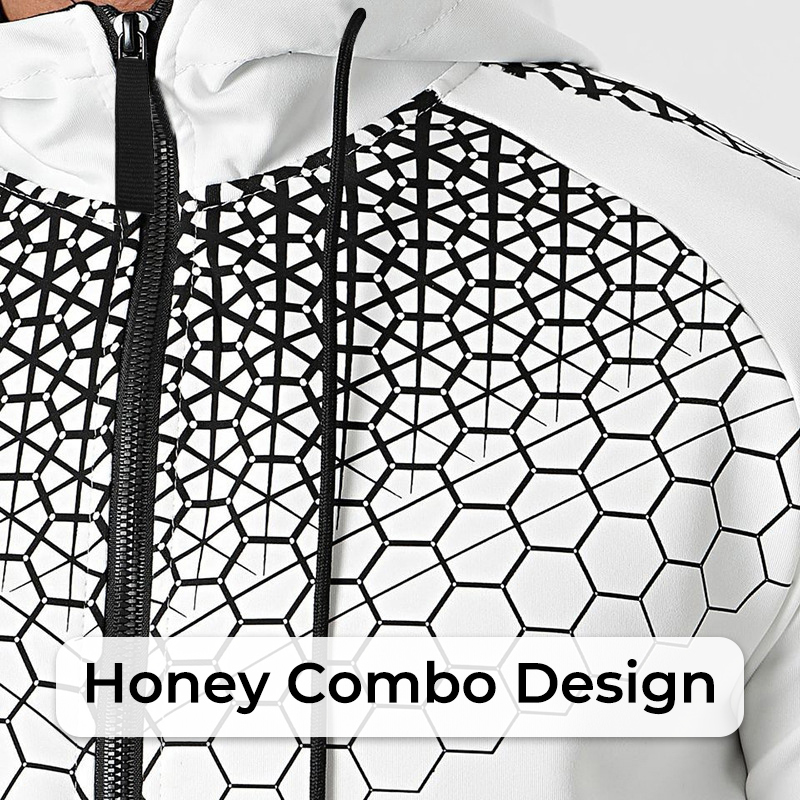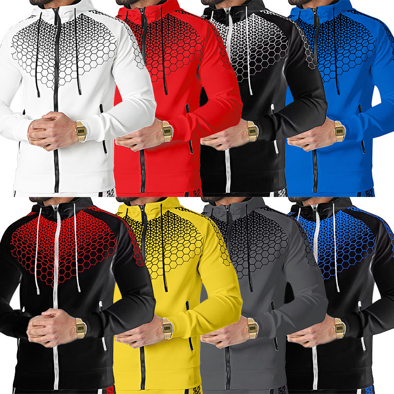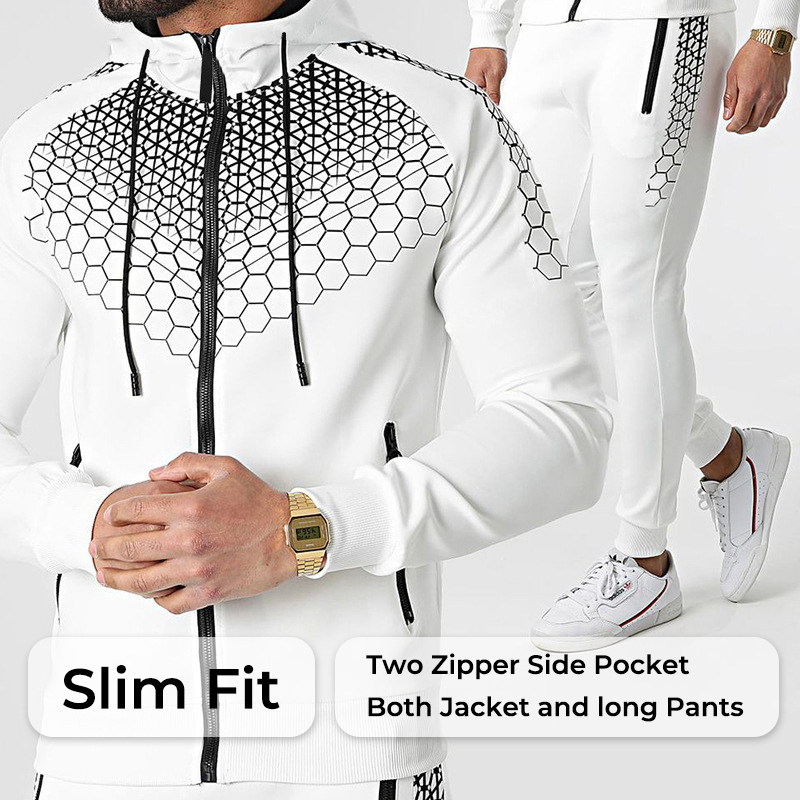 Men's Electronic Honeycomb Printed Casual Trousers Suit Fitted Tracksuit Hooded Sports Jogging Wear