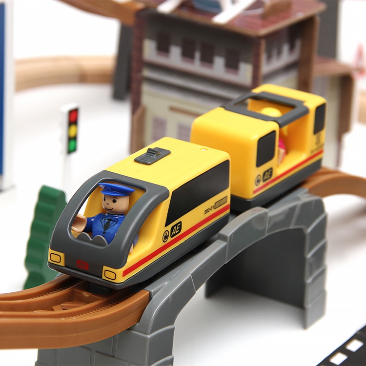 Multi Color Wooden Train Track Toys Set Simulation Air Station Railway Track Puzzle Slot Toy For Children
