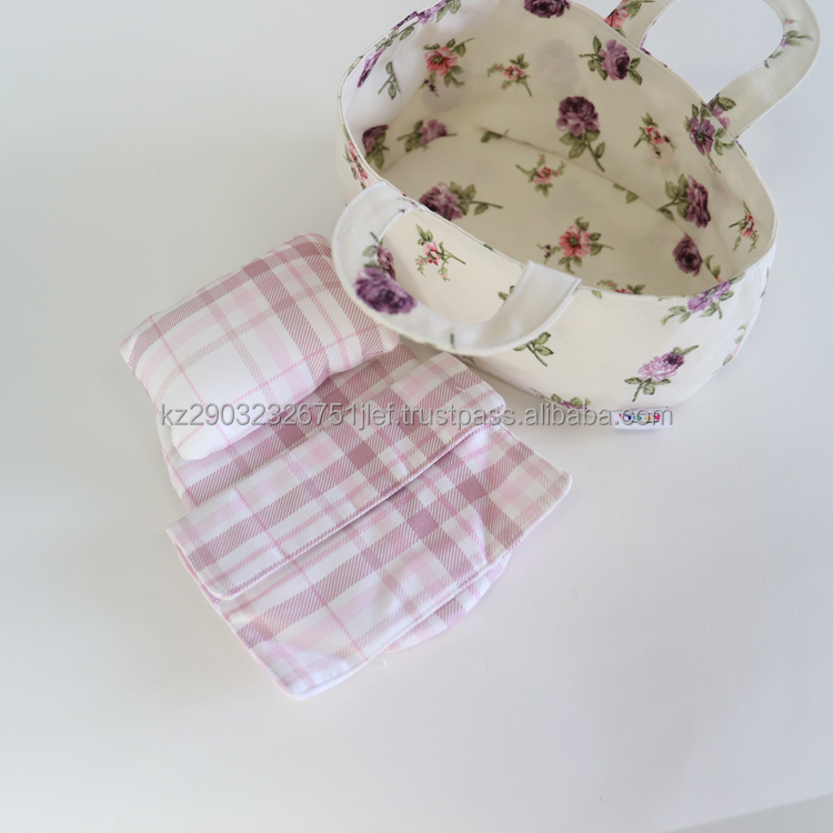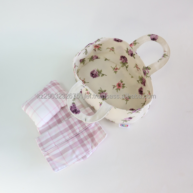 The carrying bag contains a set of bed linen (foam rubber mattress, thick blanket, soft pillow).