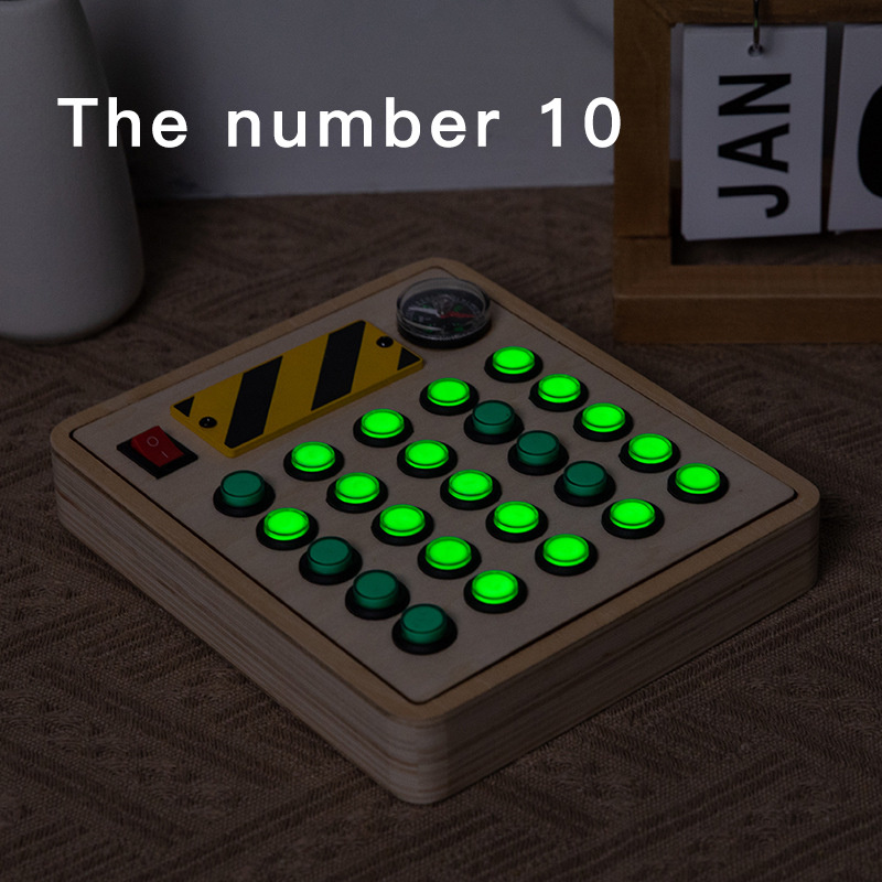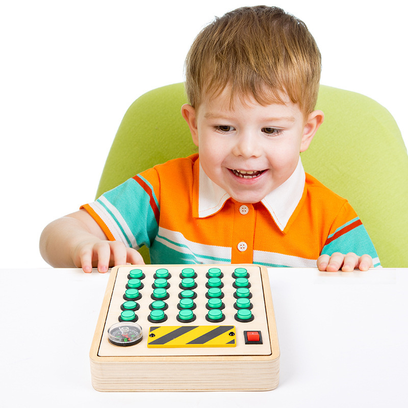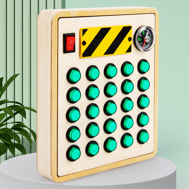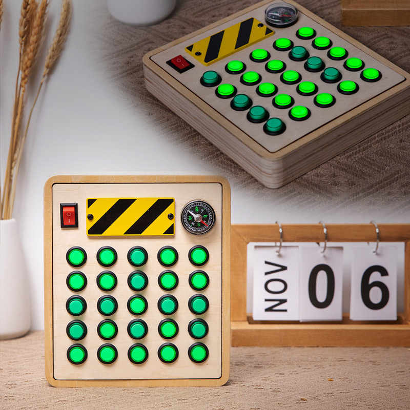 Montessori Green Buttons Electronic Busy Board Toddler Toys Wooden Sensory Game With Led Lights Educational Fidget Toys For Kids