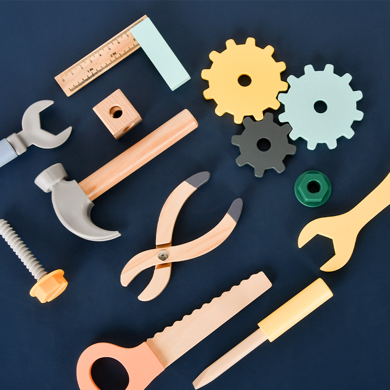 Nordic Style Wooden Simulation Tool Toystable Baby House Playing Repair Workbench Screw Nut Assembly Educational Toys 2023