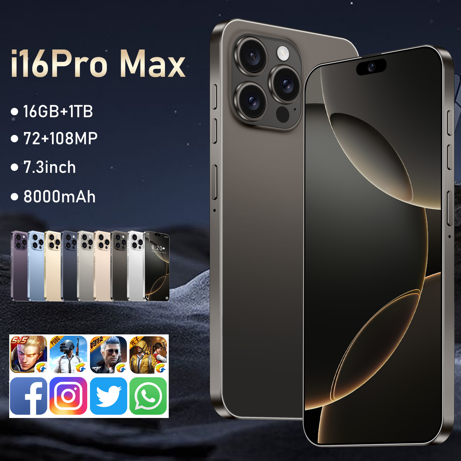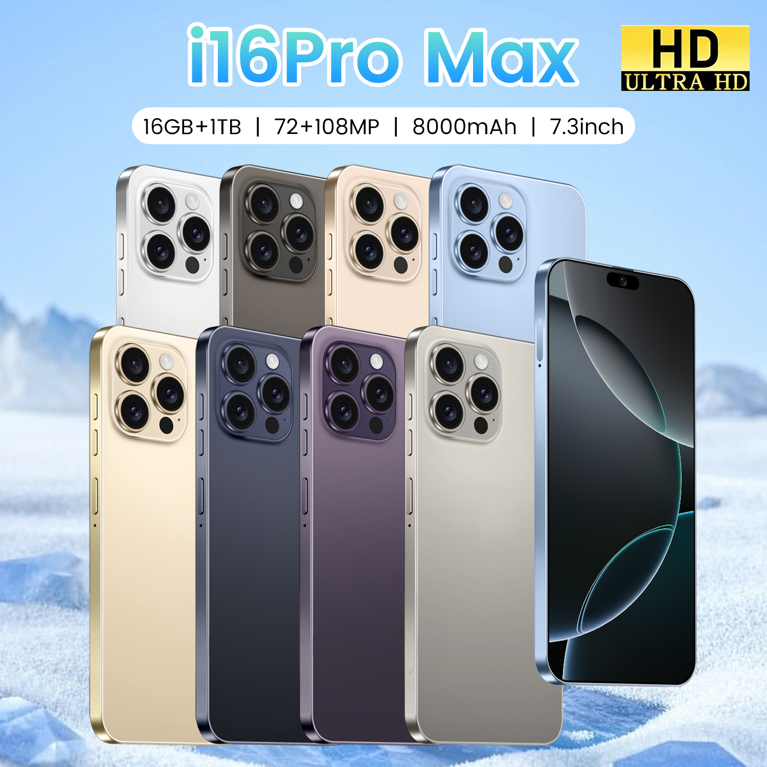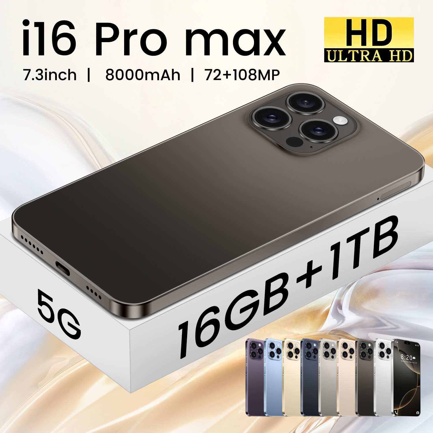 Wholesale 2025 Custom Logo I16promax Android 13 Smartphone 6.5inch HD Screen Octa-Core Central Processor Dual SIM 6 + 128GB LTE 4G 5G